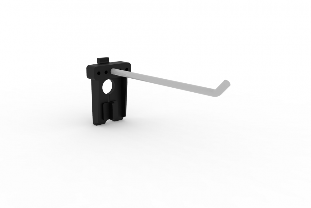 • Крепятся на пластмассовый фиксатор. Идёт в комплекте к каждому крючку.