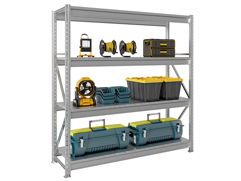 - Среднегрузовой стеллаж MS Pro 4 ярусa с металлическим настилом