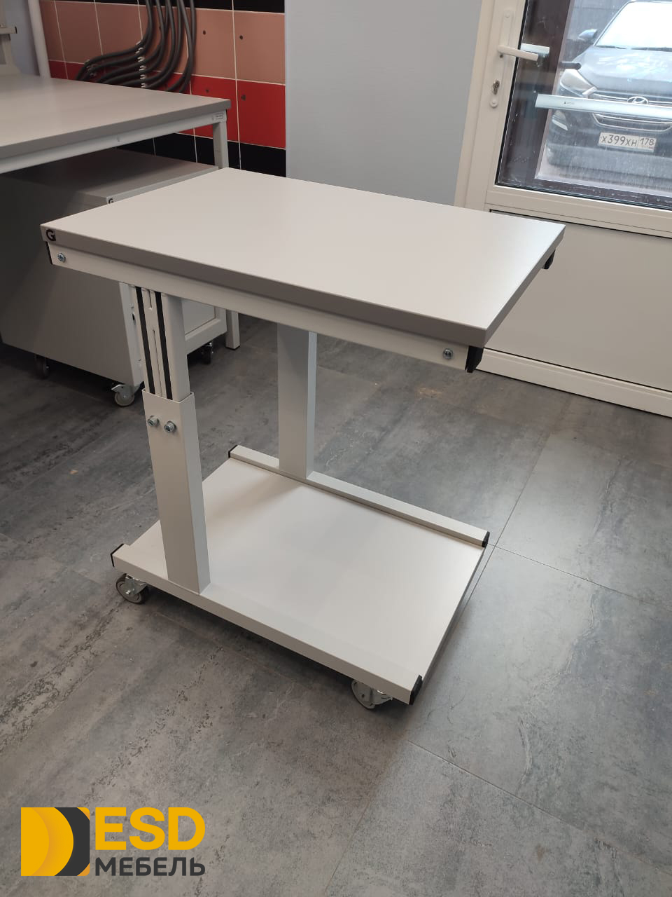 Антистатический подкатной стол, согласно требованиям стандарта ГОСТ IEC 61340-5-1-2019, на лицевой стороне столешницы имеет маркировку